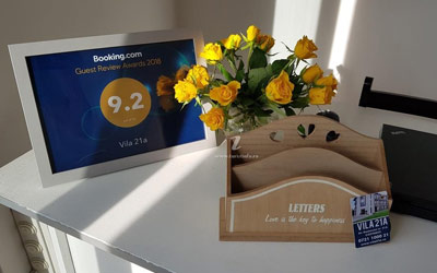 Daca sunteti in cautarea unui loc de cazare in Costinesti, cat mai aproape de plaja dar in acelasi timp intr-o zona linistita, Vila 21A este alegerea ideala. Vila 21A dispune de 17 camere dintre care 15 duble si 1 camera tripla si 1 apartament, toate avand baie proprie. Camerele duble au o suprafata de 16 mp si dispun de pat matrinomial (160 cm latime). Toate camerele au TV cu cablu, aer conditionat, frigider, balcon, acces la internet. Toti oaspetii au acces la bucatarie,terasa si piscina.